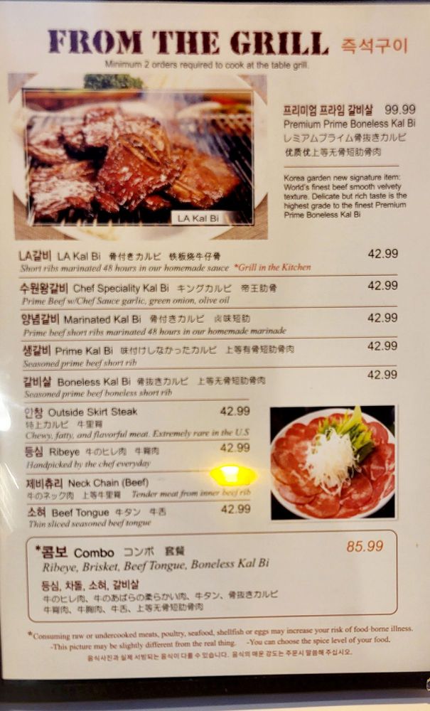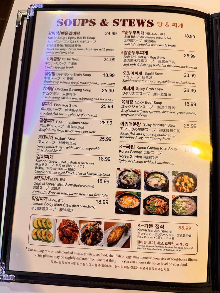Korea Garden Menu